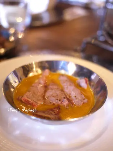 ※牛排選用Prime級的美國沙朗牛肉三種口味的沙朗牛依序是原味、沙嗲及經典的泰式酸辣醬,原味僅用海鹽調味,吃得出牛肉鮮嫩原味;沙嗲椰汁讓牛排更為鮮甜;泰式酸辣醬則讓牛肉吃來富有層次感。