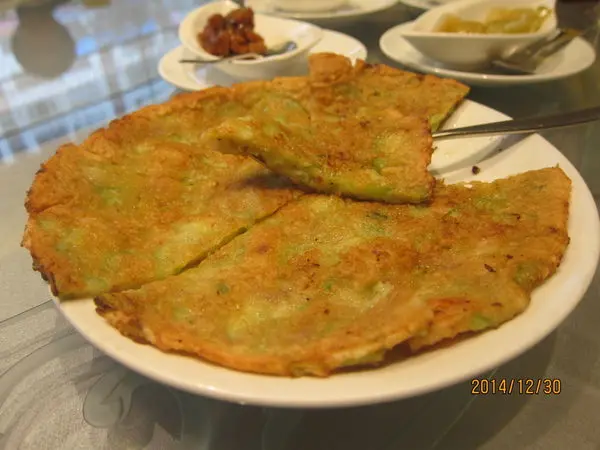 [家鄉水瓜餅] 本來以為是蔥油餅 但後來服務人員告知是水瓜餅 就是絲瓜和在裡面的 很特別 推