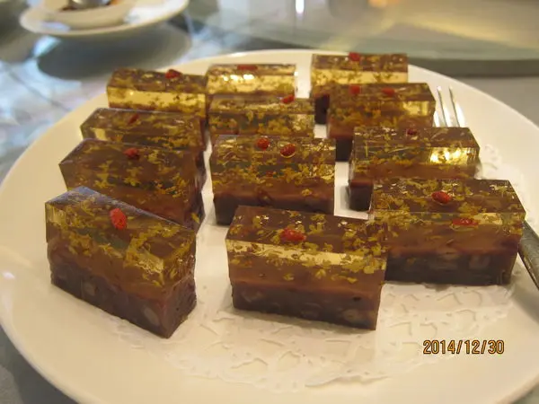[桂花紅豆糕] 好精緻的小點 上層是洋菜凍的口感 但萬更推下層的紅豆泥喔 很綿密 甜而不膩 萬吃了二個 好推