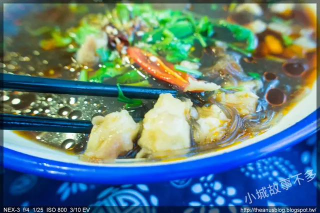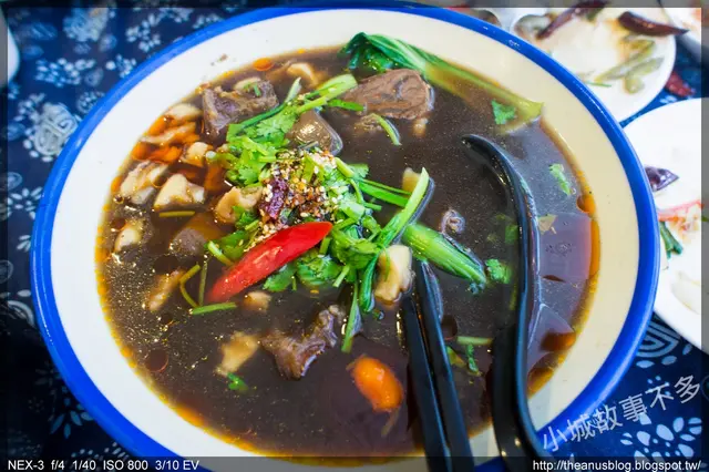 首先介紹雙紅泡饃,我來替大家翻譯成白話文,牛肉麻辣盪加麵疙瘩,在烹煮之前,服務生將印有秦字的麵糰端給我們,讓我們自己把它撕碎成一小塊,一小塊,接著店員就把東西端進去煮了,烹煮完端上桌後,先喝了口湯,湯頭香醇,麻而不辣;而牛肉燉煮到入口即化,鴨血完整地把湯頭吸收其中,讓人一口接著一口,不自覺的就把整碗吃光~