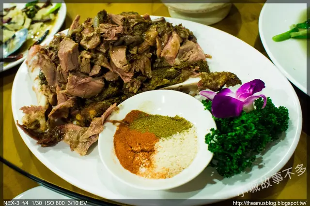 而金銀羊腿鍋子其實共有三吃,剛剛的烤羊腿是第一吃,第二吃是...清真醬滷羊排,這一道的羊肉不像烤的吃起來那麼有嚼勁,吃起來軟軟的,我覺得算是三吃裡面排行榜最後一名~