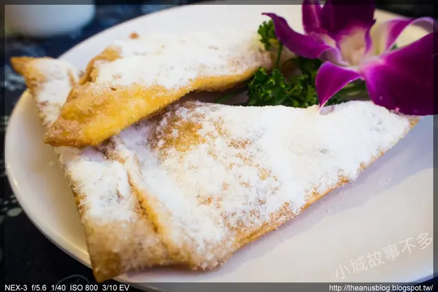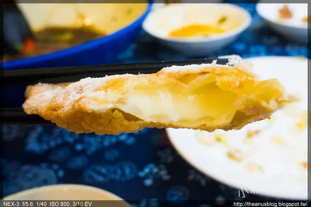而在甜點的部分,蒙古炸奶豆腐是必點的一樣,其實有點像是炸起司,外面炸至酥脆的金黃色,然後撒上薄薄的白色糖粉,一口咬下去,香濃的內餡,緩緩地流了出來...不過吃一個就好,吃兩個會膩XD