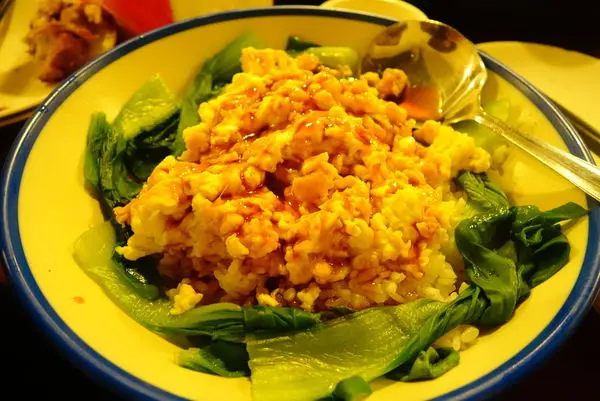蛋飯我覺得滿普通的 很像古早味的拌飯! 要吃記得先攪拌均勻 飯上面的蛋很嫩 再淋上了醬油膏 一旁還有不少的青江菜