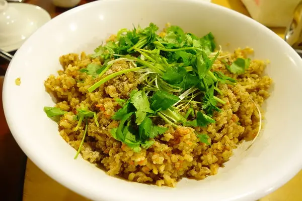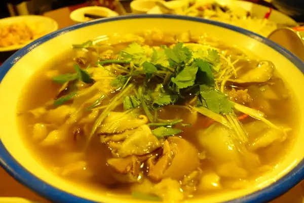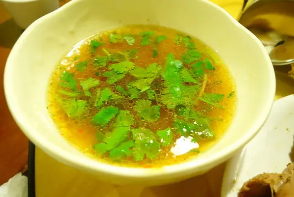 好有趣哦 服務人員先把這泡膜端給我們 請我們掰成米粒大小 完成後再交給他們 因為要拿回去煮 ~ 咦! 吃個飯還要DIY就是了 不過真的滿有樂趣的 於是指派了一位負責掰 不過若真的不想體驗也可以請服務人員幫忙的哦. 再端上來這泡膜就已經泡在這碗羊肉湯裡面了 趕緊吃一口看看 泡膜怎麼會這麼Q彈 但卻不像麵食製品泡入湯之後軟軟的 羊肉湯也不會油 而且裡面還有帶皮的羊肉塊
