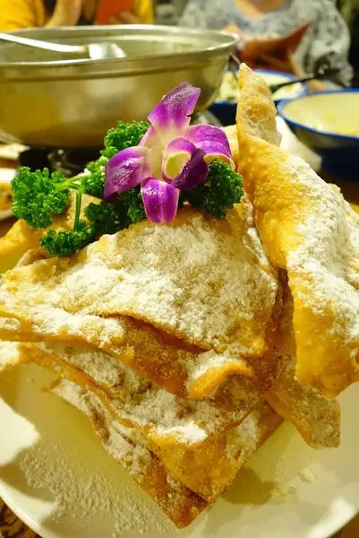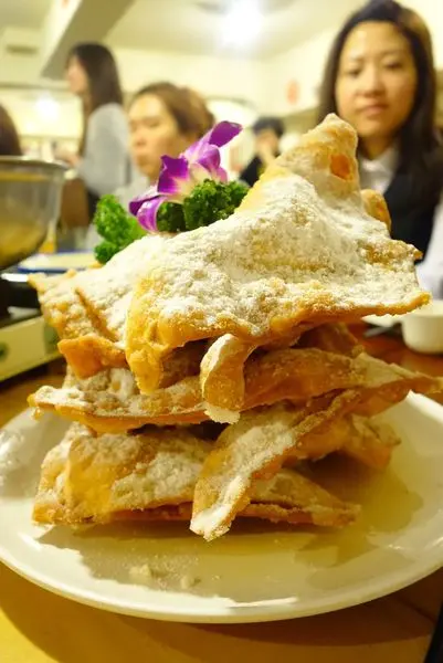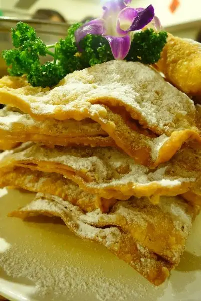 這盤是11人份 一人一片剛剛好 千萬不要分食哦 會吃不夠的! 外皮炸的很酥灑上了白色的糖霜 內餡的起士有淡淡的鹹味 好吃的不得了呀