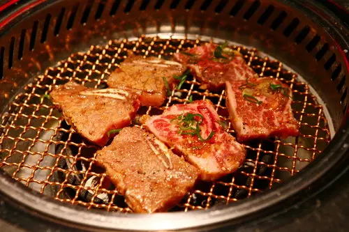 吃燒肉的沾醬有麻油、韓式辣醬和生蒜頭,可以沾著之後包上生菜吃~~