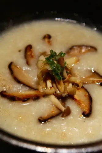 還不在菜單上的野菇粥,熬得綿爛的粥,是加了雞湯和干貝去熬出來的,加上野菇之後的香味更是迷死人,灑上一點點白胡椒,唏哩呼嚕就一大碗了!!