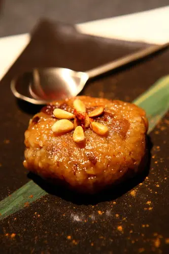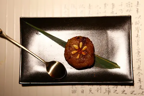 甜點是糯米紅棗,在台灣少見的韓式甜點,軟Q,甜中帶點鹹味,吃得到紅棗和栗子,加上松子的芳香,複雜的甜味,雖然飽足但仍會讓人有驚喜~~