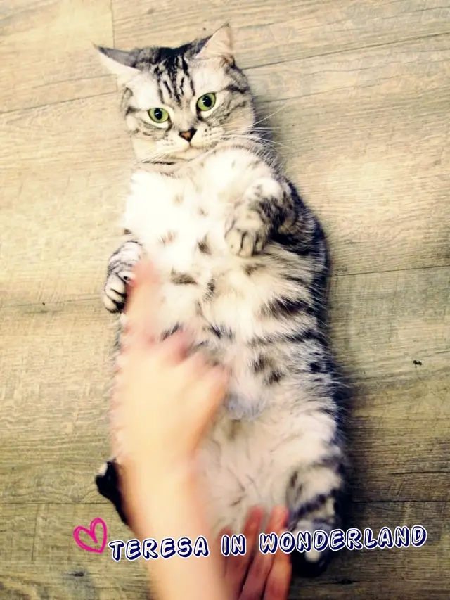 一進門馬上看到,喵咪悠哉地躺在地上午睡,又肥又多毛,忍不住偷摸幾下xDD