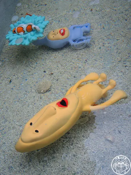 另一頭的瀑布造景有海天狗(這位我不是很確定)和海葵精(靠爆牙認出牠)