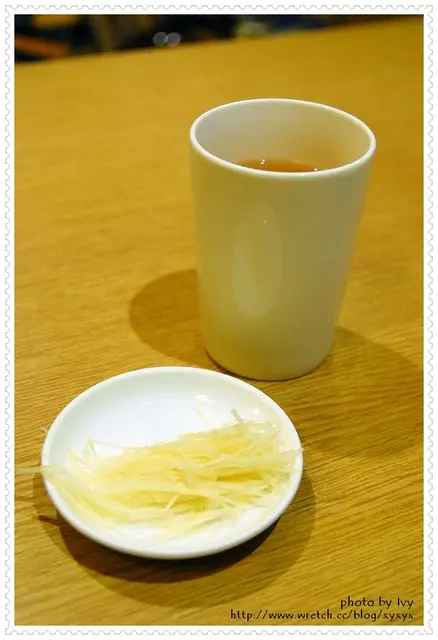 小姐迅速地替我們斟滿茶水、放上一疊薑絲,