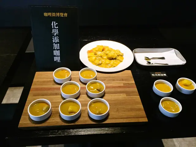 當初聽到[咖哩娘]餐廳要做一個微型咖哩博覽會,就覺得很特別,因為一直想知道[咖哩娘]到底是偏向哪個國家口味的咖哩,是帶有甜味的日式咖哩,還是泰式酸酸辣辣的咖哩?現場擺放了市面連鎖店的咖哩,調理包的咖哩,以及菜市場或式自助餐我們都會看到黃得很不自然的咖哩,每個味道都不太相同,尤其是呈現螢光黃的化學咖哩,味道更是奇怪的說不出味道,只有微微的咖哩香.