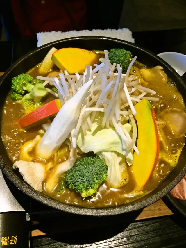 當天我們點的是咖哩火鍋和牛肉咖哩,本來其實有點擔心咖哩火鍋的部分湯汁會太濃稠,還特地問了一下湯是不是可以直接喝的,因為吃鍋總是愛喝湯阿,所謂的菁華,當然也是肥胖根源啦(笑)因為有加高湯下去調和的關係,所以咖哩鍋的湯變得很清甜,帶有微微的咖哩味,特別喜歡豐富的蔬菜經由時間的燉煮,整個吸飽醬汁,口味甘甜好吃,豬肉的部分是梅花豬,口感跟味道都覺得普通,Ash覺得餐廳可以考慮用更多油脂的五花肉,搭配新鮮的蔬菜,應該很不錯!