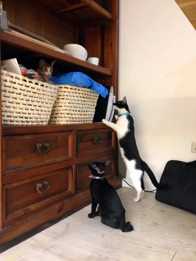一進門就有面牆,貓咪都會在這邊爬上跳下的,好可愛~但照片裡面是沒有啦!貓咪一開始還在害羞~哈哈