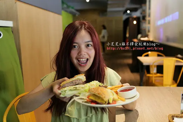 嘻嘻~~整個漢堡的高度即便我嘴張到最大也無法一口駕馭>"<