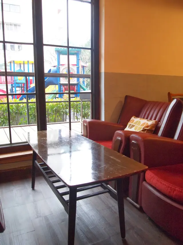 這個位置我覺得是虎屋最放鬆的座位,適合聊天,從窗外可以看見旁邊小公園的溜滑梯,陽光透過玻璃照射在桌面感覺工作的壓力瞬間都被融化掉了。