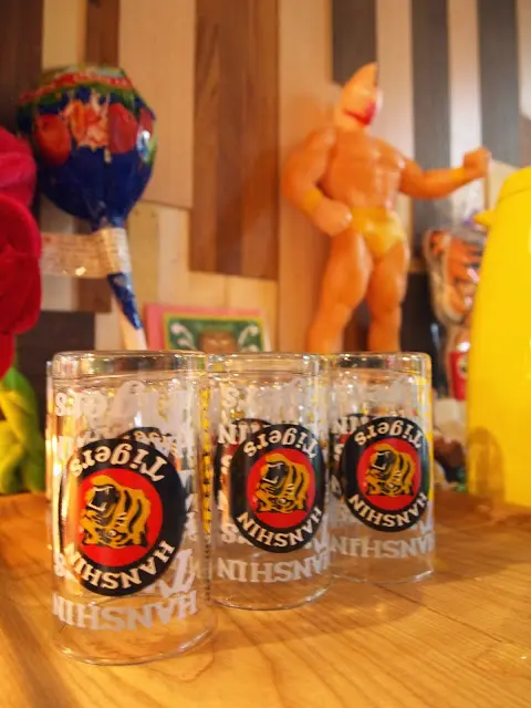 店內的水杯,上面的標誌是日本職棒阪神虎的logo。