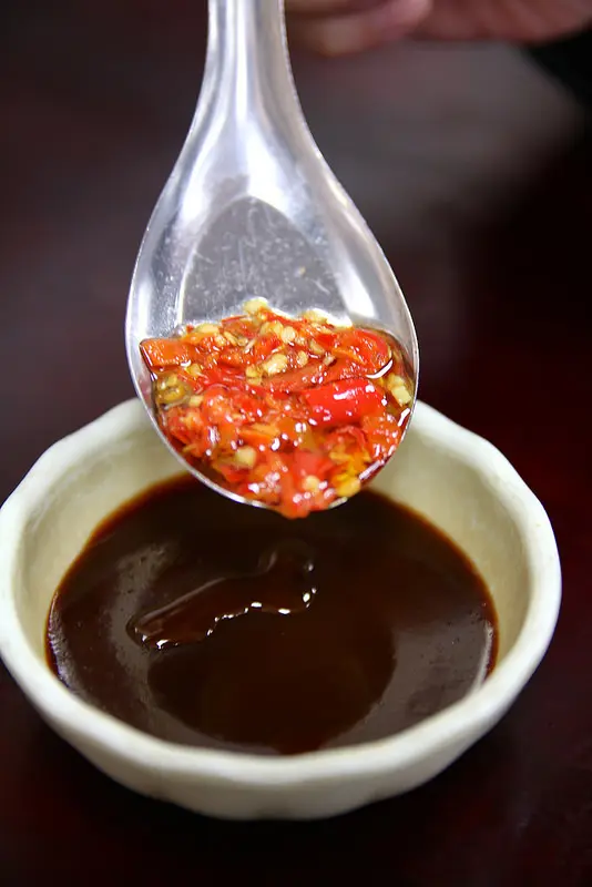 和一般在外面吃的或看到的沾醬顏色不同,口味也略有不同