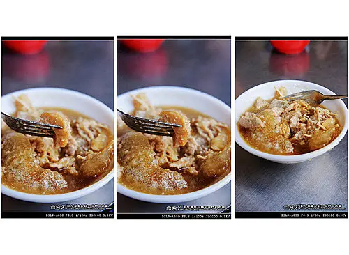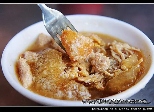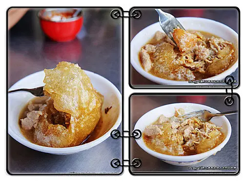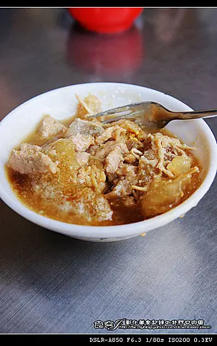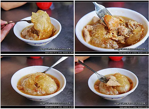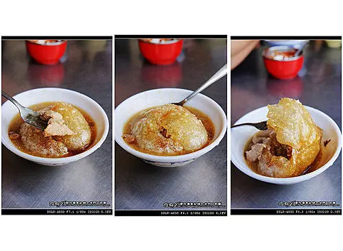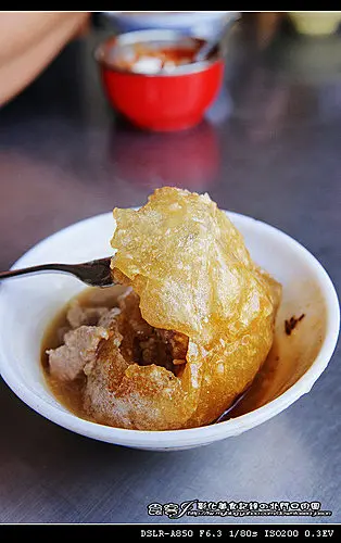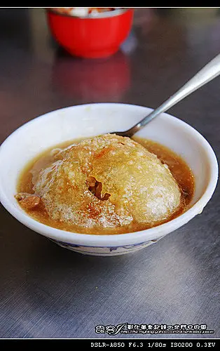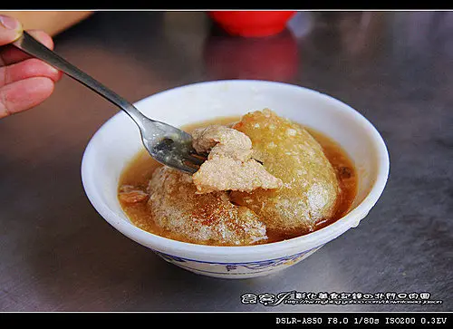 外皮就與別家的肉圓與眾不同,外皮經過高溫由炸後,表皮成現一整個酥脆的口感,但是不硬因為表皮後就可以感受到另外一個Q的外皮,醬汁為店家獨家醬汁,多層次的醬汁搭配肉圓可以感受道很特別一番風味,光外皮就讓我有點著迷也不能錯過內餡,北海道的干貝、精選較厚實的埔里花菇、豬肉及鴨蛋黃,雖然大顆不便宜但是用料真的很實在。整體度與美味度:★★★★☆