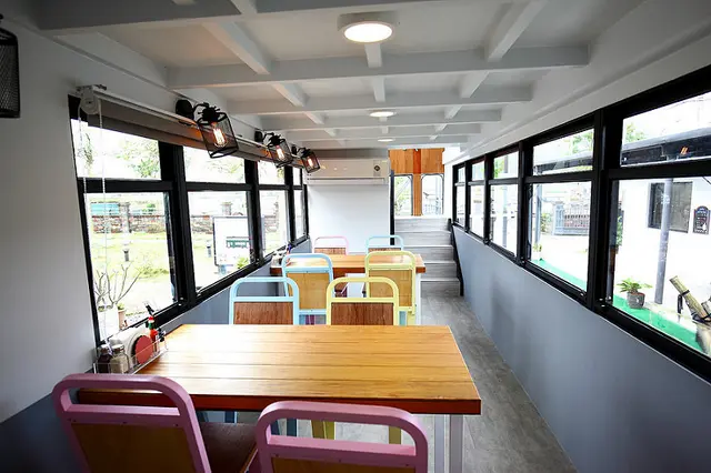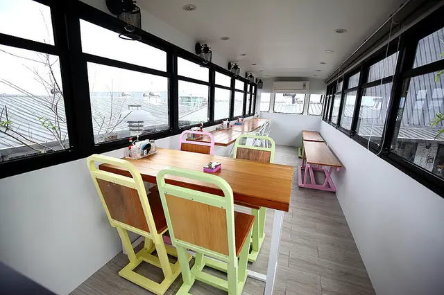 走上雙層叮叮車,原來這裡也是用餐區,小桌子小椅子超可愛的!