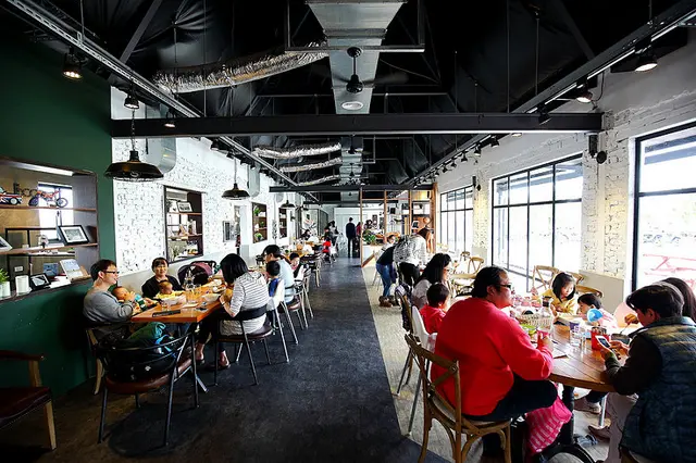 人數稍多的就坐餐廳外側的長桌或是數個圓桌併成的用餐區,這裡空間也比較開闊