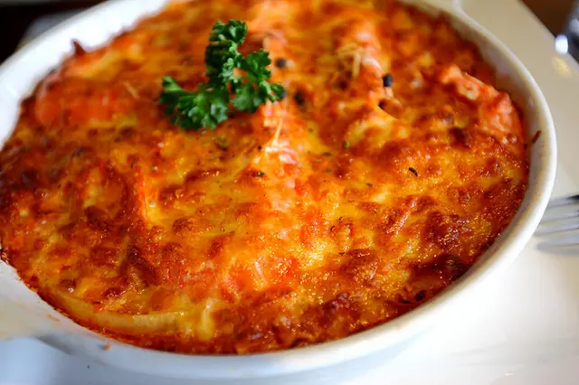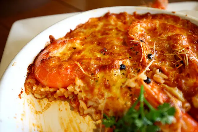 熱呼呼火辣辣還不錯吃,微微帶點蕃茄的酸味,加上起士烤的相當到位是好吃的焗烤飯