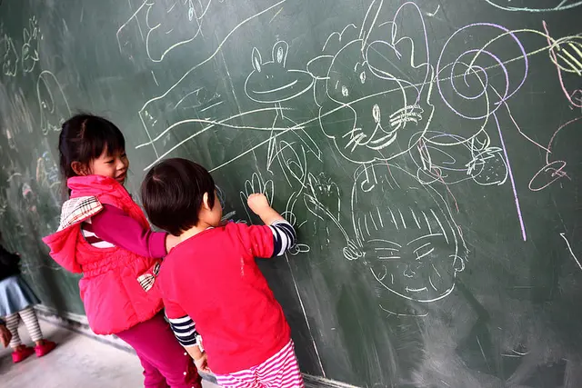 有提供彩色的粉筆認小朋友在此盡情的塗鴨