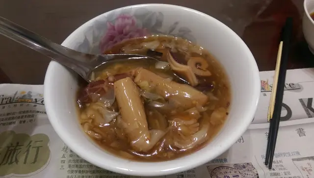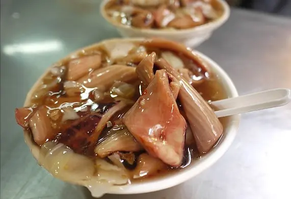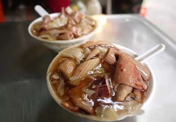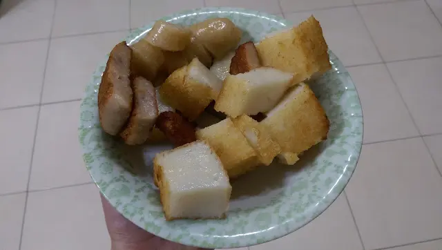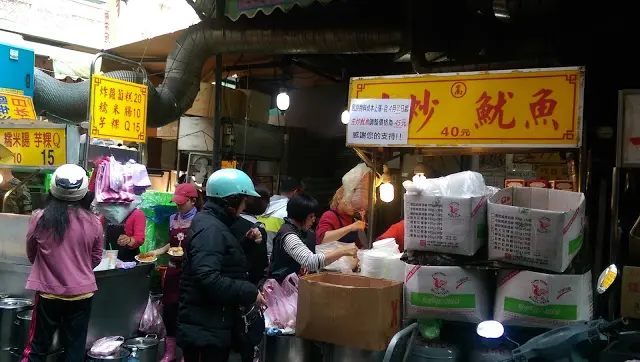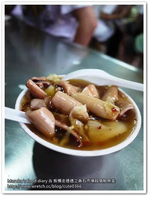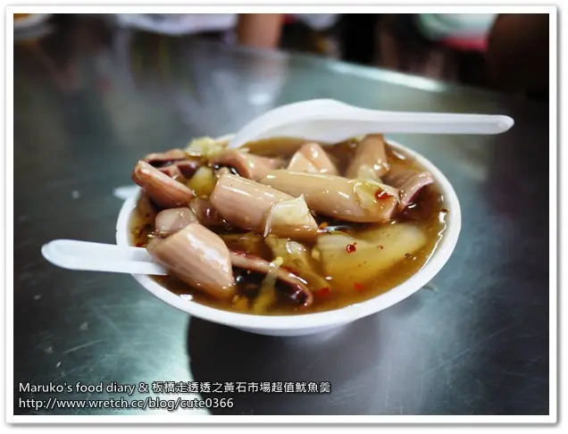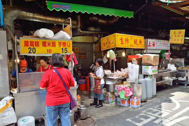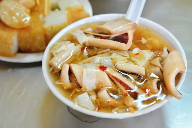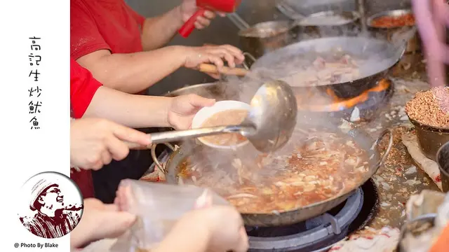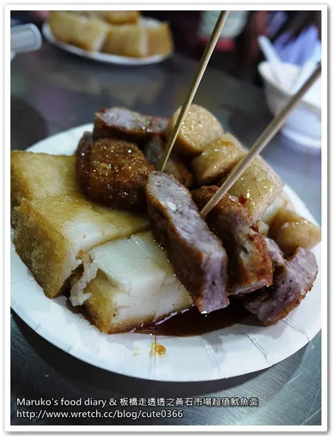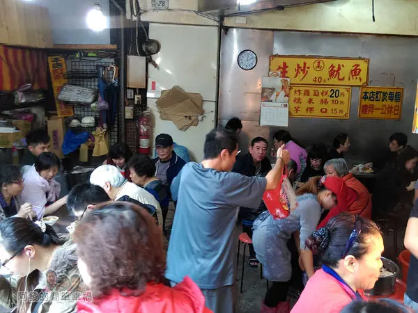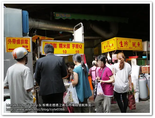 在板橋黃石市場中的高記生炒魷魚,是板橋人熟知的銅板美食,每到用餐時間總是大排長龍。除了生炒魷魚,更不能錯過的炸蘿蔔糕、米腸及芋粿,不用100元,就可以飽餐一頓!是到慈惠宮求發財金或遊板橋林家花園時,不錯的小吃選擇。板橋黃石市場是艾方妮國中時期的回憶,因為下了課要補習,總會在補習前來吃晚餐,這裡的小吃真是學生的好朋友,通常不用花大錢就可以很滿足!其中又以高記生炒魷魚最受到歡迎!幾乎每次經過都會是這樣的景象。其實高記生炒魷魚不只一家店,而是兩家店結合在一起,用餐區也是共用的。若是像艾方妮是離峰時間來,只要有座位就可以儘快找位置坐。若有排隊,外帶是排在炸物這邊,內用則是站生炒魷魚這邊排隊。生意極好的高記生炒魷魚,攤頭上就擺滿了準備要用的食材,消化速度極快。切得超厚的蘿蔔糕也是不間斷地往油鍋裡送 。由工作人員的手指來比較,就可得知那蘿蔔糕的厚度,真不是一般可比擬的。無論外帶或內用,都會切成小塊,然後淋上蒜頭醬汁,想吃辣要事先說。另一邊就是生炒魷魚了,滿滿一大鍋,在大量的客人消化之下很快就見底,有時來得不是時候,還要等下一鍋煮好。主要的食材就是高麗菜及生魷魚。攤頭上有兩鍋,一鍋是炒好盛裝,另一鍋就是正在炒製。工作人員夠多,所以出餐上相當快。市場中用餐環境無法太要求,幾張桌子板凳,不免要跟別人併桌,大概一次可容納20人左右。綜合炸物 $45通常入座前就跟服務人員說綜合,就是把三樣炸物一起點齊了!上面的是芋粿Q,就是俗稱的芋粿巧。下面則是糥米腸及蘿蔔糕。糥米腸 $10高溫炸出來的米腸,外面腸衣帶著酥脆感,米心軟綿,10元的米腸真的沒什麼好挑剔的了!芋粿Q $15記得以前沒有很愛這個芋粿Q,因為覺得沒什麼芋頭味,但最近這次來訪,發現芋粿Q中竟然有大塊芋頭本人在裡頭,炸得酥香,咬來充滿Q勁,並帶著芋頭的香甜,比以前有好吃一些,覺得老闆是否換了食材供應商?蘿蔔糕 $20雖然也是漲價了,但這蘿蔔糕一直是艾方妮的最愛!高達5公分的厚度,四面炸得金黃酥脆,咬下時那個咔滋聲,加上細嫩的口感,搭上一般的蒜片及辣椒,真是國中以來不變的好味道。雖然蘿蔔絲的成份沒那麼高,但20元一大片,能吃超飽!之前通常一份蘿蔔糕就可以吃飽,現在一個人吃綜合,也是太飽,所以建議可以兩個人一起吃一份,比較不容易膩,而且可以留著肚子去吃別的小吃。生炒魷魚 $45其實只要生意好,東西就會特別新鮮,幾乎剛炒好就上桌,那魷魚吃來就特別Q彈。之前來只會吃炸物,不吃生炒魷魚,除了會太飽之外,最主要是這味道太甜了!但這次吃的時候,卻發現沒以前那麼甜了,反而覺得很好入口。把高麗菜炒軟後,加入大量的醋及魷魚。因為酸度高,高麗菜吃來會有台式泡菜的錯覺,酸度中和了甜度,讓整體湯頭喝來很順。別看小小一碗,裡頭料多實在,一個人吃完炸物配一碗生炒魷魚,只能說飽到天靈蓋。高記生炒魷魚就在位黃石市場中,這市場小吃聚集,大家可以多約一些人,安排慈惠宮求發財金,或順遊林家花園,然後把這黃石市場的美食一起搞定,也是不錯的半日遊。等艾方妮集結附近美食,就會出一篇懶人包給大家參考囉!…查看更多