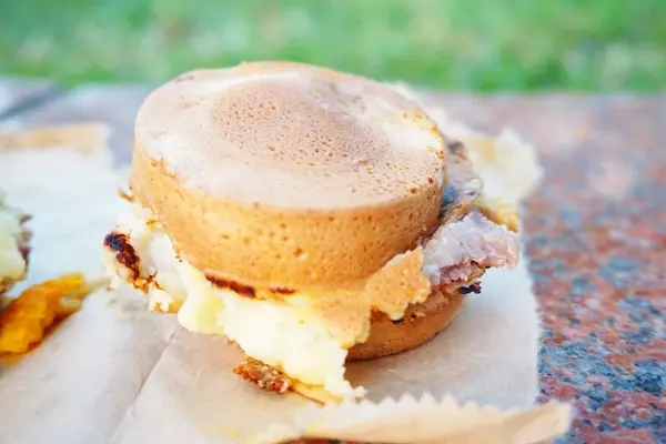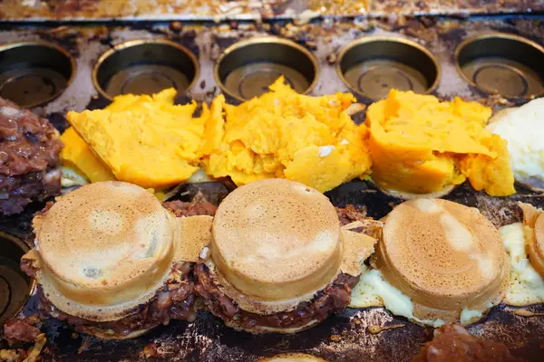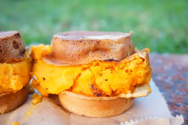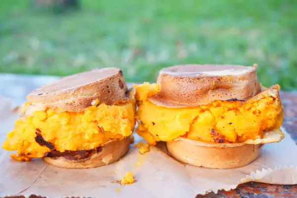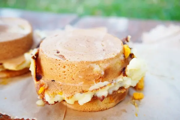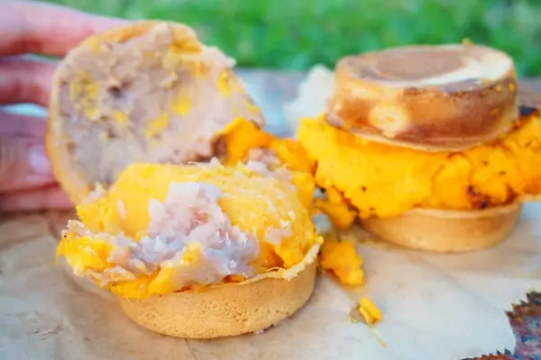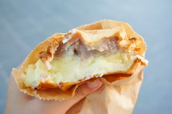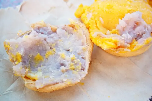 車輪餅中還可以看到蛋白和蛋黃的部分