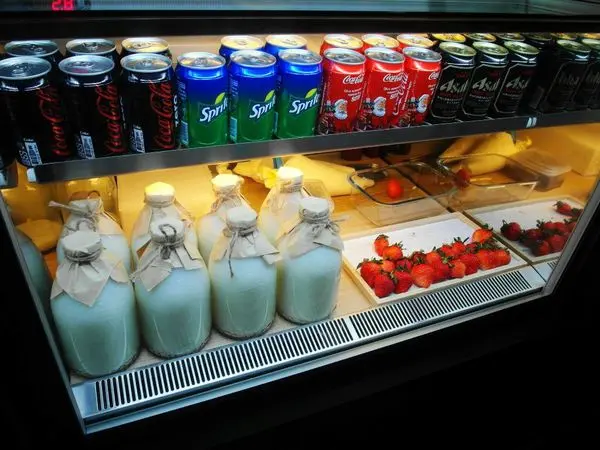 冰箱櫃也陳列著很多的汽水罐跟食材的來源