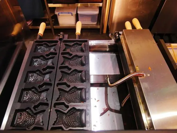 可以看到鯛魚燒的模具是特製過的,魚頭被切掉一點,主要是要放冰淇淋