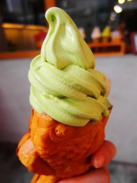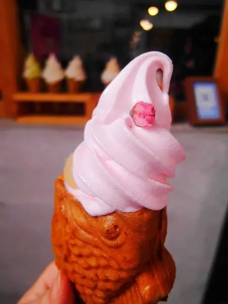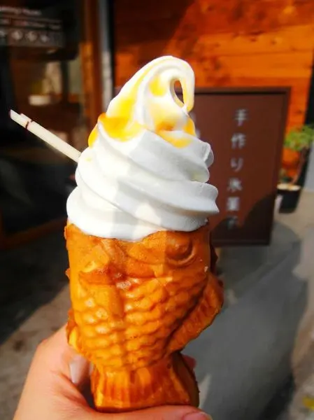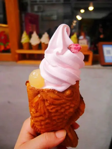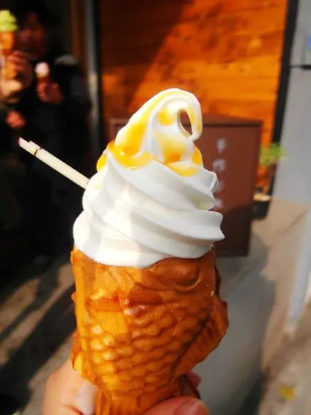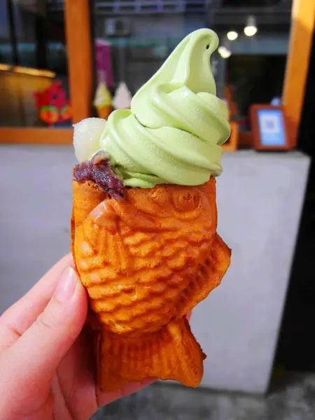 暖呼呼的鯛魚燒與上頭冰涼的霜淇淋一起吃