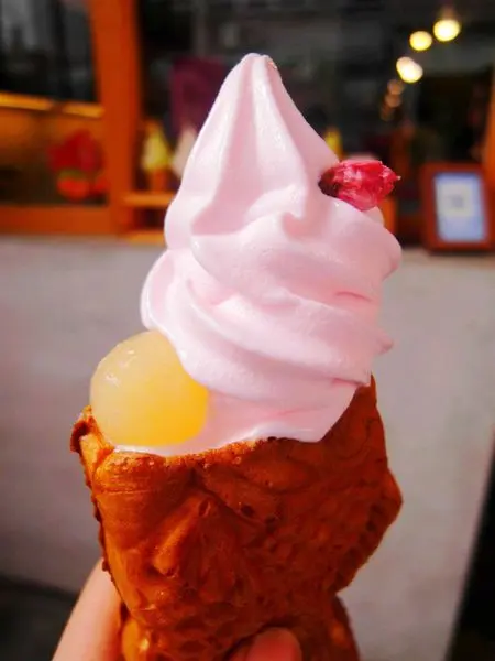粉嫩櫻花色的霜淇淋就讓人眼睛為之一亮