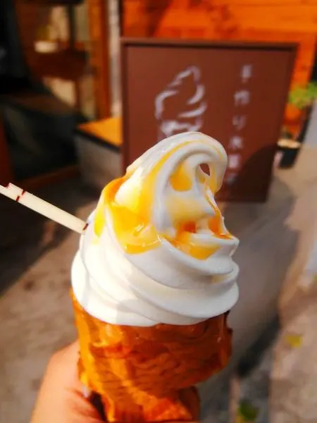 霜淇淋的奶香味超級濃郁,淋上奶牛糖漿好甜蜜
