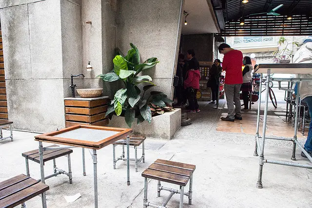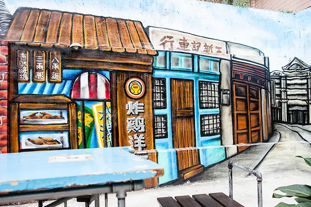 店內有分室內跟室外的座位,室外的牆上有著炸雞洋行的特色彩繪