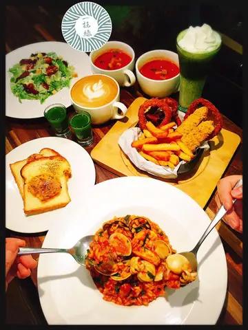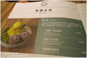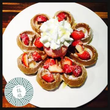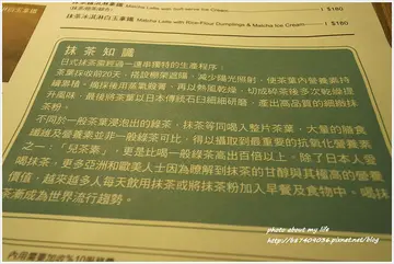 [用餐時間 2016/8/18,晚餐]和抹茶控的同事們很常交換抹茶店的最新資訊 看到有店家把抹茶加進燉飯和啤酒?立刻收進口袋名單!當天搭捷運到雙連站→轉公車518到西華飯店→步行3mins到一抹綠民生店 為了抹茶真的很勤勞XD下車後在公車站對街的巷弄內找到店家 門前誘人的抹茶起司塔立牌比招牌還顯眼門前站了隻店家設計的綠色小惡魔 可愛的小尖牙和小尖耳和多數走日式和風的抹茶店不太一樣綠色小惡魔、綠色霜淇淋和綠意盎然的植栽 還沒踏進店內就有濃濃綠意的fu展示櫃擺了不少抹茶罐和茶筅 左下角還有抹茶控看到應該會想尖叫的抹茶清酒不像多數店家會標榜使用哪些日本知名的抹茶品牌 一抹綠使用的抹茶粉是跟日本茶農合作的自有品牌為了讓客人品嚐到日本最佳品質的抹茶 一抹綠捨棄知名品牌且堅持和不用農藥的茶農合作...~摘自一抹綠粉絲團 另一邊的展示櫃也有些日式小物 最大的亮點就是各式冰品的sample 吼~每種都想吃是要怎麼選啦XD牆上幾隻色彩繽紛的小精靈讓用餐環境的氛圍多了可愛fu看menu才知道店家的圓圈Logo發想自沖茶用的茶筅曲面外型和道道切割的竹現伸展成一個完整的圓 不斷週而復始的意象代表店家對品質的完美堅持不容妥協底下抹茶小知識寫著抹茶從茶葉還沒採摘前就先遮陽提升營養素 摘下後經過乾燥再細細研磨成抹茶粉 抹茶比起用茶葉沖泡的綠茶等於完整的茶葉 所以有更多膳食纖維、抗氧化營養素和兒茶素...bala bala...既然抹茶這麼健康當然等會要吃多點才行XD宇治金時刨冰、芭菲、冰淇淋和冰沙...抹茶控在炎熱的夏日夜晚看到這麼多抹茶冰品簡直High翻啦❤特別的是還將抹茶融入主餐的鮮蝦燉飯 必點!人多想share或怕吃不飽還可以+30元加量 貼心酒飲就屬抹茶啤酒和抹茶清酒最吸睛 從鹹食主餐、甜點冰品到酒飲都看得到抹茶的蹤影詳細menu點此炙烤起司舒芙蕾(280元)說是舒芙蕾但外觀像鬆餅而口感有點像紮實版的海綿蛋糕 烤到焦色的表層帶點Q膨勁搭的醬汁是起司味跟一般甜味的舒芙蕾不一樣覺得有點特別 旁邊烤的酥鬆又有奶油香的吐司還不錯從沒想過抹茶也能做鹹食?!不說還以為鮮蝦抹茶燉飯(350元)是青醬燉飯XD聞起來真的有抹茶(粉)香但入口的茶味其實沒想像那麼濃郁雖然主廚用較淡的帕瑪森起司突顯抹茶原味但還是覺得起司比較明顯 也因為有培根所以肉香也滿明顯相比一般燉飯覺得奶香和鹹味比較淡 挺不一樣的感覺店家燉飯選用義大利的De Cecco Riso rice所以米粒偏硬也很有嚼勁 不習慣的話可先告知店員做調整對巴黎風香煎堅果麵疙瘩(260元)最有印象 麵疙瘩沒有麵糰的嚼勁反而像麵包的軟綿口感 嚼勁來自薄Q的磨菇肉麵疙瘩煎炒過所以泛著焦色的表層飄散濃郁的焦香 看似白醬口味卻不是奶香而是淡淡的起司鹹香粉絲團寫著:Gnocchi(義大利麵疙瘩)傳統義式做法是馬鈴薯、太白粉和麵粉 一抹綠採現在法國巴黎米其林廚師最流行的做法,使用choux pastry(泡芙的外衣)製作,口感比傳統作法更扎實咦~扎實?怎麼跟我實際吃的口感不一樣XD番茄海鮮義大利麵(300元) 可能用了風乾小番茄所以紅醬有番茄香但沒那麼酸又薄又扁的麵條咬起來有Q勁 海鮮的份量跟鮮度也OK 推鄉村馬鈴薯烘蛋(170元)挖開表層會微微牽絲 只記得顏色繽紛的烘蛋有濃濃的起司粉香氣和不少超大塊的馬鈴薯然後就沒了...XD一抹綠宇治金時(150元) 刨冰上的那球冰淇淋可以選抹茶or焙茶抹茶和焙茶冰淇淋的茶味重所以不像和茗偏甜也不容易膩 猜想和茗冰淇淋裡應該放不少牛奶所以奶甜比較明顯配料有抹茶凍、白玉(軟中帶Q 好吃!)、紅豆+煉乳還附杯熱茶暖身 貼心加分!清酒宇治金時(150元)配料和熱茶相同但還多了1小杯 原以為是額外附的抹茶糖漿 拿近聞才發現是抹茶清酒!糖漿甜沖淡清酒可能會有的苦韻而酒味降低糖漿的甜度 都有抹茶所以抹茶味沒變淡反而多了酒香 推抹茶乳酪蛋糕(160元)當天最想點的MomatchArt賣完了...另一個想點的翻轉蘋果派也no速...看來想吃甜點得早點來搶才行改點的抹茶乳酪蛋糕濕潤感十足 含在嘴裡的黏糊感就像吃抹茶口味的起司塊 偏向重乳酪所以奶味很明顯依稀聽到店員說這是第2代但不確定是抹茶純黑巧克力派還是抹茶惡魔蛋糕的第2代?(160元)對蛋糕表面黑到發亮的巧克力印象深刻 薄薄一層就很濃郁卻不會濃到發苦 好吃到搶走抹茶的風采寫文的現在只記得嘴裡滿滿的巧克力味 幾乎不記得抹茶味XD 裡頭蛋糕的口感也走濕綿路線信玄水蛋糕(單點飲料or冰品加購50元)就是前陣子曾風靡過的水信玄餅早在流行前就曾在帕莎蒂娜箸吃過(對於美食我可是常走在流行前端呢(笑)) 當時對外觀比味道留下更深刻的印象水信玄餅的味道就跟外觀一樣透明 靠沾黑糖蜜和黃豆粉才有味道 可以想成是愛玉的無味版XD最特別的地方在於晶瑩剔透的模樣和咕溜似水的凝凍感 有些餐廳還會放進食用花看起來就像藝術品而捨不得吃抹茶啤酒(180元) 泡沫綿密、啤酒味不重且苦韻也不明顯所以真的有淡淡茶味 沒想到抹茶跟啤酒也能搭作夥!喝到最後杯底還殘留不少抹茶粉 猜想如果在淡啤酒裡加進大量抹茶粉是不是也能變成抹茶啤酒XD玄米雪鹽抹茶拿鐵(150元)在常見的抹茶拿鐵加進粗鹽的顆粒感和鹽味 鹹味和香濃的茶香奶韻很不一樣卻有種微妙的和諧連吃多道抹茶料理對清酒宇治金時的那小杯抹茶清酒最有印象 要