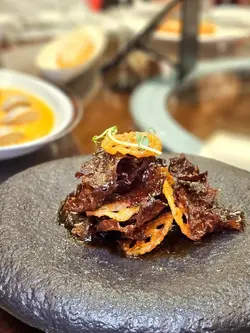成都許家菜的相關菜色已經納入常規,將來都可以單點,這場表現與上回幾乎一致(看來穩定度還行?),各味型醬汁搭上飯麵輪番轟炸相當爽,總之是台北目前最值得一試的川味,雖說請客樓的定位是台灣獨有的"川揚菜",但我跟朋友以前都覺得川菜類是弱於江浙系,看來請客樓雖然掉星,但許宏德主廚有在找尋向上的路,有趣的是~怪味牛小排在當天辣勁特別高(第一次吃是微辣+甜酸麻+類巧克力的厚味底),我們其實覺得這樣子層次更好,卻發現餐廳人員有在探討此道為何變辣的原因,畢竟與原recipe要呈現的不同,單就這一點已經足夠給予稱讚。(這次我安排的菜單是根據上次吃了覺得不錯、再加入一些還沒試過的,可惜雞米芽菜的兩款蟹已經不能用美饌打折,那個味型是上次前三喜歡的)(紅油麻辣鮮鮑,紅油+芝麻,香而不辣)(跳水泡菜關東刺參,預期中的彈性與爽口泡菜)(麻醬美人腿,香醇濃郁,也算是必點)(川味蒜泥鮮蝦,原本做豌豆蝦仁就會用的藍鑽蝦,熟度甜味皆好,鋪上紅通通實則微辣的蒜泥太合拍)(陳皮燈影牛肉,朋友說想吃才加點,口感好很多~上次偏韌~)(清湯仔雞豆花,雞脯肉同樣弄得很細綿)(青辣汁深海東星斑,部份醬汁搭白麵更合適,比如這青辣味的魚汁拌麵,可惜當天魚肉口感扣分)(花椒脆皮妙齡乳鴿,屏東的肉鴿,上桌前墊熱石板滋滋作響,玻璃脆皮、徐徐滲入的花椒香味,真要挑剔就是肉質不夠優~雖說處理得蠻有肉汁,不確定是否台灣食材的限制)(糊辣荔枝海虎蝦球,也是上次覺得ok的菜)(魚香汁蜂巢生食干貝,出乎意料好,蜂巢的酥鬆、干貝熟度,而且魚香醬應是目前吃過蠻有辨識度的手路,只要穩定發揮就算是必點了)(七滋八味雪花牛小排,即怪味,開頭提過這次辣椒與胡椒堆出的辣勁更強,美麗的錯誤?)(豆瓣回鍋肉,朋友說想吃才加點,印象仍然薄弱)(許家菜麻婆豆腐)(紅油白菜水餃)香煎牛肉焦餅,吃過即可~原因是C/P太低)(紅糖醪糟涼糕,上次喜歡的甜品,分子料理涼糕+紅糖酒釀風味)招待水果與豆沙鍋餅,鍋餅很好!雖然以前來大多時候都會點,但這次不論溫度或口感都把持得很穩(齒來香椰汁蛋捲,我從香港扛回來的)…查看更多