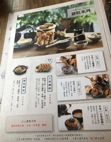 天吉屋在日本只有新宿一間,在台灣總共有三間分別是忠孝店、京站店、新竹巨城店,是天丼專賣店之外,對於怎麼吃還有一套特別方式,單獨吃天婦羅、炸物與醬汁搭配米飯、在天丼淋上高湯的天茶泡飯,三種不同步驟便是天幕御膳創意三吃法,是許多饕客來品嘗的原因之一,也讓愛吃炸物的人有不同感受。天吉屋位於京站百貨也是台北轉運站,同時也因鄰近台北火車站人潮也相當多,從京站MONT BLANC 萬寶龍旁邊的出口出來便可以看到天吉屋,對面則是山頭火拉麵。另一入口處則是在華陰街上。服務人員態度很友好,會事先詢問是不是第一次來需不需要做介紹。MENU可點圖放大提供牛蒡茶及醃漬牛蒡,牛蒡茶味道特別喝起來溫潤。天吉双品 NT$350鮮蝦2尾、白身魚、透抽、地瓜、茄子、青椒、溫泉蛋、讚岐烏龍麵(小)另外還有附上和風沙拉及味噌湯,可從淺淺的顏色及形狀分辨出每一樣炸物,我個人喜歡的是炸蝦酥脆肉質嫩脆不會過於油膩,地瓜紮實有甜香味,透抽有帶頭及觸鬚,蔬菜的部分茄子青椒容易吸油,會比較有油膩感而茄子也容易變得軟爛,醬汁部分有明顯的味醂甜味,倒是米飯部分沒有期望中的粒粒Q彈分明,有點小失望,讚岐烏龍麵Q彈滑潤,搭配冰涼的醬汁很清爽解膩,最後吃下是一口良藥。溫泉蛋炸的火侯洽當,留下的金黃蛋汁是亮點。查看更多