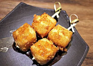 武侍酒居酒屋 位在捷運南港展覽館步行約四分鐘的距離店內有吧台區 一般座位區 以及較隱密的半開放式包廂區裝潢走一個日本古樸的武士風格 燈籠印有武侍酒獨有的家徽初陣 上撰酒  清酒壺搭配小酒杯 喝起來超有氣氛的是不是 ~~酒精濃度可不低 喝起來甘甜又帶有一定厚度 期待小小微醺感 可以點這個「酒後不開車 安全有保障」京都抹茶雙重奏 濃郁的抹茶vs香濃牛奶 輕淡的酒香融合抹茶的澀味和淡淡奶香激盪出美妙的滋味 抹茶控不妨來一杯試試 很好喝!「未成年請勿飲酒」胡麻高麗菜 好大一盤鮮脆的高麗菜 淋上香醇濃厚的胡麻醬汁 吃起來相當爽口開胃鮭魚炒飯  米粒香Q粒粒分明 搭配海苔絲 青蔥 蛋 玉米 細碎鮭魚肉 簡單味美讓人意猶未盡炸丁香 小巧可愛的丁香魚炸的酥酥脆脆 細刺經過油炸已經脆化搭配店家三種沾醬梅子醬 大阪醬 照燒醬  每個滋味各有千秋     蒜酥盤切牛橫隔 牛橫隔熟度拿捏的恰到好處 師傅可說是烤工了得搭配香氣迷人的蒜酥非常的加分!很適合拿來下酒的一道料理! 火烤牛肋條 牛肉香氣四溢 肉質吃起來軟嫩不老 每一口都讓人欲罷不能阿!火烤章魚串 原本以為章魚的口感是略有嚼勁的那種 結果出乎意料的細緻滑潤老闆也特意幫我們搭配大阪和鹽烤不同口味 兩種口味都很出彩 難分勝負!  大阪燒雞肉丸 不僅僅是雞肉丸子那麼平淡無奇 裡面還加了脆脆的雞軟骨搭配大量柴魚片 香氣很是迷人 是讓人充滿驚喜的串物 私心推薦必點柚子胡椒里肌 融合柚子的清新和辣椒的辛嗆 搭配豬里肌很有畫龍點睛的效果 相當好吃!   花生醬雞腿肉 最喜歡挑戰新奇的口味了 鮮嫩雞腿肉搭配香濃花生醬 沒想到滋味相當合拍!鹽烤扁鱈 魚肉雪白細嫩 魚皮口感有點恰恰(台語)的 擠上檸檬增添清新芬芳和酸溜滋味 很好吃!起司牛肉捲 牛肉包裹鹹香起司 炸的表面金黃酥脆 完美的組合搭配 實在是太銷魂了! 洋蔥豬肉捲 豬肉片搭配清甜洋蔥 屬於比較清爽不膩口的炸串  焦糖鮭魚菲力 好大一塊鮭魚肉 表面經過焦糖炙烤 吃起來有微微的甜度 滋味相當有趣橘紅的鮭魚肉質紮實甜美 富含天然魚油 魚皮烤的酥香可口 也很適合拿來當下酒菜!炸牡蠣 肥美的牡蠣 包裹金黃麵衣 吃起來新鮮無腥臭 正港有鮮!酥炸麻糬 經過油炸口感香Q卻不油膩 搭配沖繩黑糖醬 香甜可口黑糖蒸麻糬 不喜好油炸可選擇蒸的 外觀以武侍酒家徽呈現 是店家的小巧思口感較有韌性 但不會黏牙 同樣搭配甜甜沖繩黑糖醬 味道也不賴! 查看更多