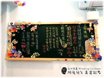 上周就為了考試回台北兩趟,所以也拿了幾張台北的~XD考完後心情整個在放假了!! ( 明明還要回台中把下學期的課修完 )Blooming Ice Sweet 花果茶霜淇淋專門店在松山文創園區旁,慢慢散步感覺很快就能走到這了,附近也有好幾間不錯的咖啡廳這幾天不論是台北或是台中天氣都很好,晴空萬里的藍天很漂亮 天氣變熱,霜淇淋也是散步甜點之一,剛到的時候人潮不少耶!遠遠就能看到森林系的店面,感覺很像巷弄裡的花園,滿醒目的 店內的座位並不多,包含門口的座位,總共只有三張桌子可內用不過霜淇淋能邊走邊吃,也能很快就吃完,所以滿容易有座位的 店門口還有好可愛的洗手台,吃完霜淇淋也不怕會沒地方洗手。 長型的店面布置得很漂亮,從花朵小物就能感覺到店家用心布置白色的梳妝台也增添不少歐式風格的氣息,也展現了店家的特色 Blooming Ice Sweet 花果茶霜淇淋專門店每週推出兩款口味,其中黃金特別版是使用高級的食用金箔,黃金純度高達99.99%而且不是只有金箔粉而已,是將一整片金箔包覆在霜淇淋上呀!! 這間店的特色就是使用歐洲的嚴選花果與花草茶作為霜淇淋原料櫃台旁還有陳列出來,老闆也有給我們聞看看花草茶葉的香氣~老闆和店員都很親切,也不會吝嗇給在猶豫的客人試吃冰品唷! 品項 數量 天然花果茶系列霜淇淋 各1支 原味茶系列霜淇淋 花果茶(可續壺) 1壺 ※以上口味依當日店內提供為主※ 紅莓香橙花佐茉莉茶凍(140元) 上周的花果茶口味是紅莓香橙花佐茉莉茶凍,自然的桃紅色好美霜淇淋上淋著有許多果粒的紅莓果醬,旁邊還有插上一整顆葡萄 吃第一口就能嘗到花果茶的香,怕濃烈花香的我可以接受這香氣紅莓的酸甜滋味會讓女生很喜歡唷!這口味吃起來並不會甜膩,底部是一整顆茉莉茶凍,茶香濃郁,搭配霜淇淋吃味道很豐富!焦糖錫蘭紅茶佐珍珠布丁(130元) 原味茶系列霜淇淋是使用錫蘭紅茶製作霜淇淋,再淋上焦糖醬, 旁邊還放上黑糖珍珠,份量也不少唷!底部則是放入一整顆布丁因為用料天然,所以融化的速度滿快的,用杯子裝也很容易吃。 老闆說霜淇淋配上布丁和珍珠一起吃更好吃,甜蜜滋味卻不膩口這口味甜度比紅莓香橙花還稍微高一些,但我幾乎整杯吃完 XD濃郁的紅茶香配上焦糖,味道感覺變得很像奶茶耶!滿特別的唷Q彈珍珠加上雞蛋布丁的蛋香,味道和口感層次都是相當豐富!甜蘋玫瑰果粒(100元/壺) 花果茶的部分,老闆讓我們先喝看看兩周後將要推出的新口味,以前只喝過常見的蘋果茶,很少會喝到蘋果加上玫瑰的花茶呢! 剛泡的時候茶色呈現漂亮的金黃色,微酸微甜的香氣十分迷人~ 越到底部果酸的味道會越明顯,茶色也會變深一些,呈現橘黃色蘋果的微酸微甜融入淡淡的花香,不愛玫瑰的我卻很愛這花果茶也是讓我對花果茶及霜淇淋口味的創新感到十分驚豔的體驗喔!…查看更多