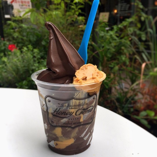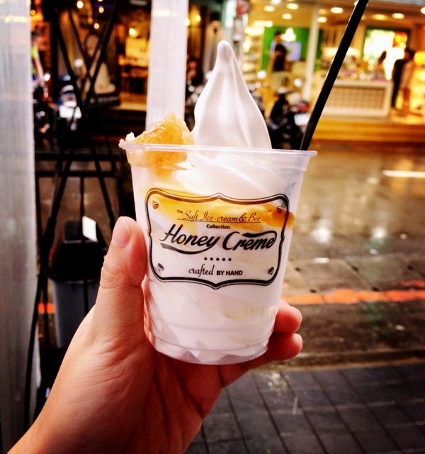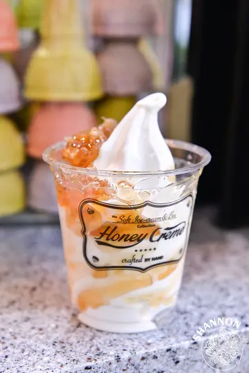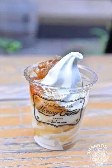 退燒了我才來吃~其實我本來沒有打算嚐試的因為價格很高,不過當天和朋友逛東區他點明今天一定要吃到Honey Creme (蜂巢冰淇淋Honey Comb Ice Cream),所以當然我就帶他過來囉!已經沒有排隊的人潮,看了這間店面會覺得簡單多了,一旁也有座位可以坐著吃外面看板就擺了超多種搭配,不過朋友最想吃的就是蜂巢所以打算買蜂巢的那款店內不大小小的空間,玻璃櫃前看的到大量的蜂巢彩色的甜筒也是蠻注目的不過我們使用杯裝所以看看就好當天朋友點用的時候沒注意點成巢蜜冰淇淋,是拿到的時後才赫然發現我想應該很多人也會犯這種錯誤,結果再領取櫃臺那邊問可不可以改那小姐說可以阿,要在家多少呢?40元!我想這位店員真的很不會作生意畢竟點了蜂巢和巢蜜的差別只是+20元,店員講+40元的話照道理是不能改只能加囉!Anyway...感覺不是很好!巢蜜冰淇淋 130元 蜂巢+40元=170元 (真的覺得店員該給我們算150元)冰淇淋的鮮奶味很濃郁也帶些甜味,加上了蜂蜜的香甜是還蠻不賴的不過就是太甜了,我一個人可能吃不多所以應該是也不會想點用只能一起分享!蜂巢的口感蠻特別微微的脆口但也沒有什麼味道,如果不加蜜吃應該也蠻奇怪的,不過朋友覺得蜂巢很好吃很喜歡,我則是覺得新奇不特別喜歡…查看更多