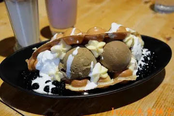 吃完清潭洞韓式燒烤 청담동後我們想找地方續攤坐著聊天搜尋找到這家有賣雞蛋仔的下午茶看起來好可愛 而且我本人好愛吃雞蛋仔XD它的店名真的很不像賣雞蛋仔好詩意 不是可愛風XD 店的空間不算很大座位也不多 所以座位的間距算是比較小一點 熊貓咖啡(150元+10%)就是拿鐵加上芝麻醬是店裡的招牌飲料之一印象中友人說味道頗濃我猜喝到後面會卡痰吧XD 香蕉藍莓牛奶(150元+10%)也是超美的一杯飲料啊 綜合野莓水果優格百匯(150元+10%)上桌覺得也太美了吧有水果、冰淇淋、優格 下面還有堅果類好健康的一杯啊XD 珍珠奶茶雞蛋仔(250元+10%) 烤的外層酥脆有口感的雞蛋仔搭配著奶茶冰淇淋、鮮奶油、卡士達醬以及滿滿的珍珠真的很像在喝珍珠奶茶一樣雞蛋仔裏頭還隨機咬的到珍珠QQ的口感超特別的真的很好吃耶 這裡的飲料跟甜點我都很喜歡口味上都很不錯 吃完下午茶好滿足啊店裡也有賣正餐跟輕食有機會再來試試 希望跟下午茶一樣也很美味囉 …查看更多