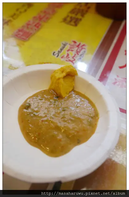 老闆建議我們一開始先吃原味~~如果喜歡吃重口味的話可以沾他們特製的關東煮醬料~~加了黃芥末會稍微嗆辣一點