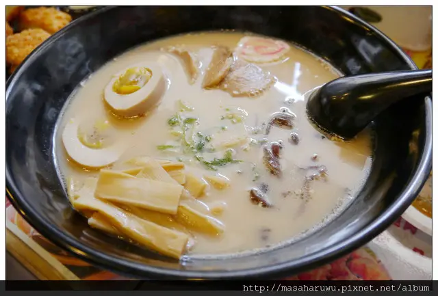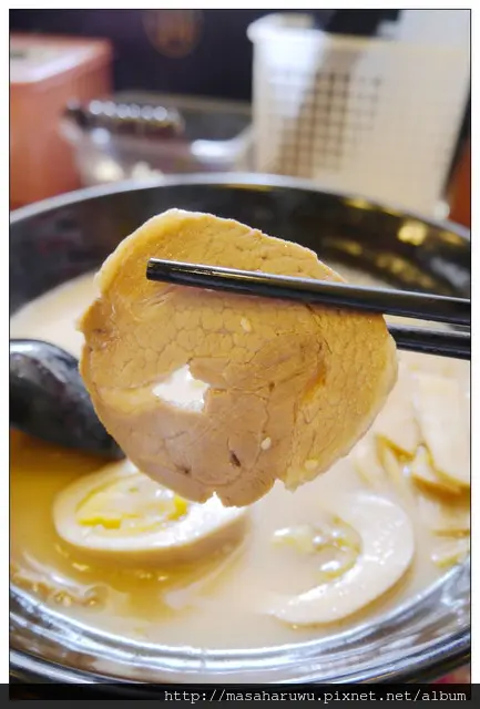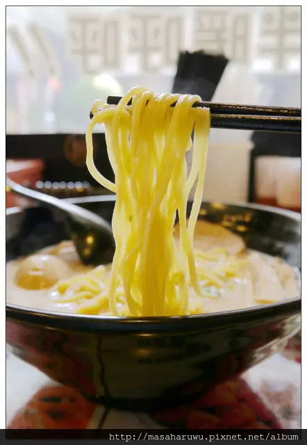 小菲很沒創意的點了最基本的豚骨口味~湯頭的豚骨味是還蠻濃郁的~但總覺得有點奶香~好特別XD