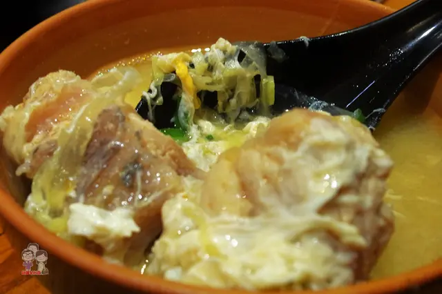 味噌湯是店家免費提供的,裡頭有帶骨的魚肉,份量相當的多,