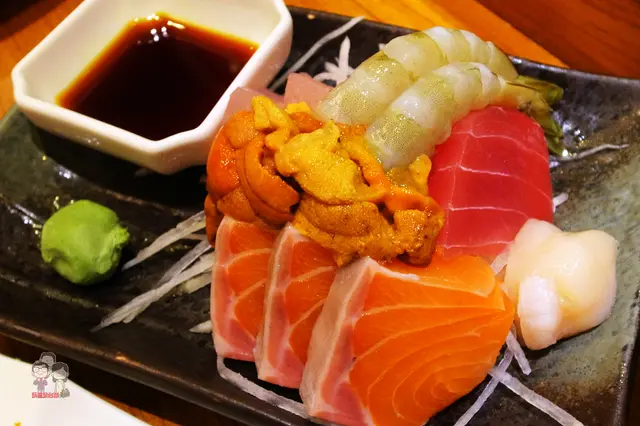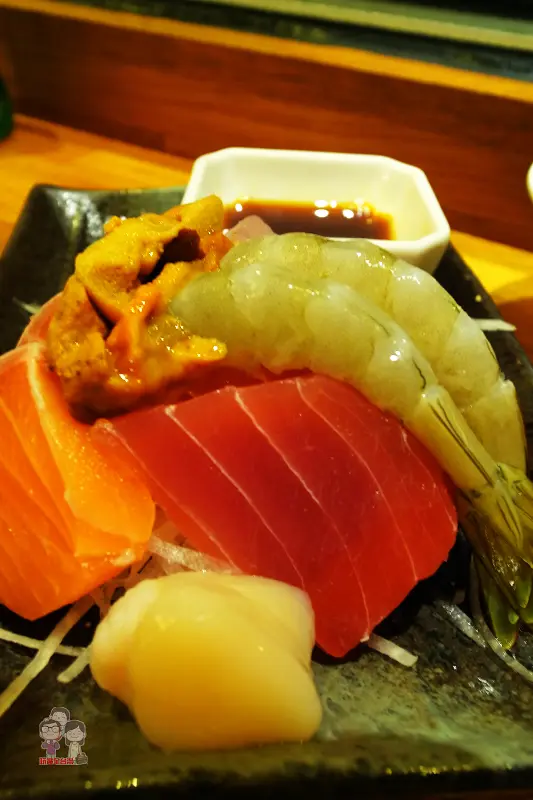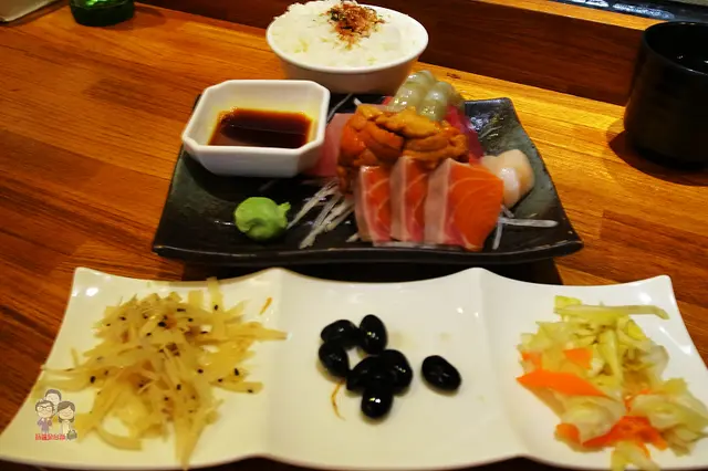 只是生魚片的數量少了一些,但多了一碟三種小菜可以搭配。
