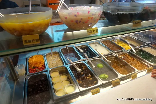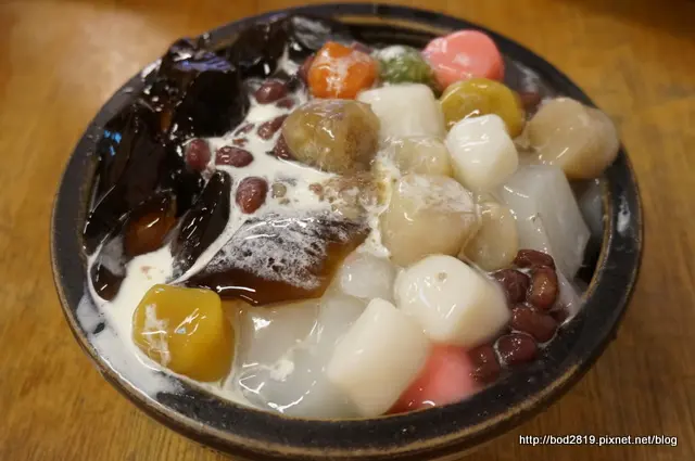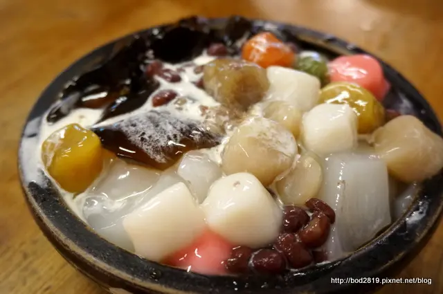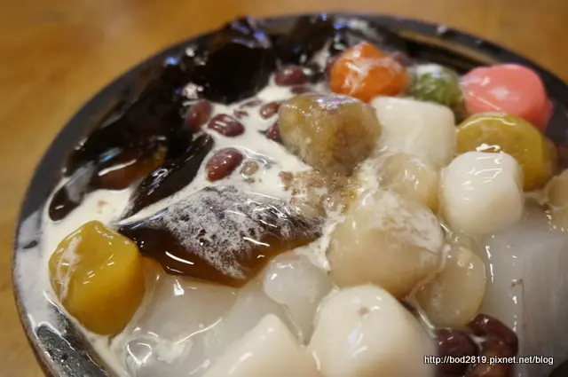 有小紅豆、四色芋圓等,比較特別的有橘色跟綠色,