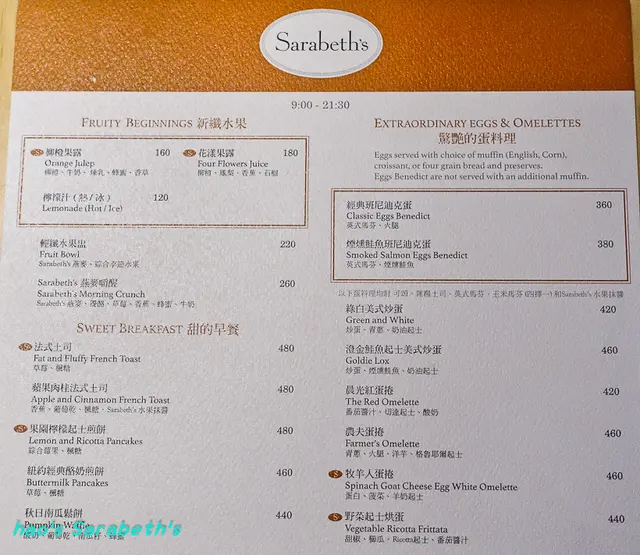 早在造訪Sarabeth's前,就知道該店的經典代表是法式吐司跟班尼迪克蛋,