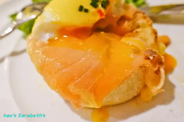 斑尼迪克蛋飽滿軟嫩,一切開,黃澄澄的蛋汁順流而下…嘖嘖,太銷魂。