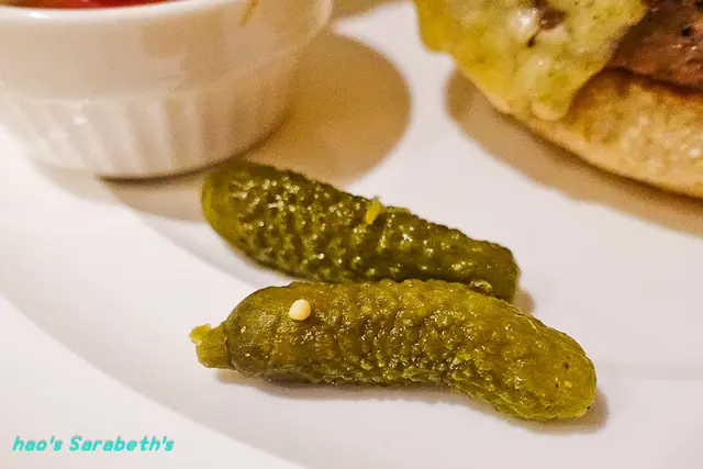 酸黃瓜小巧清脆,酸度適中,搭配漢堡吃來很爽口。(好想買回家…)